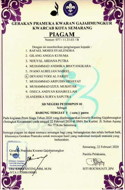 LOMBA SISWA BERPRESTASI ( PUTRA ) DEVANO YOGI ALFARIZI
